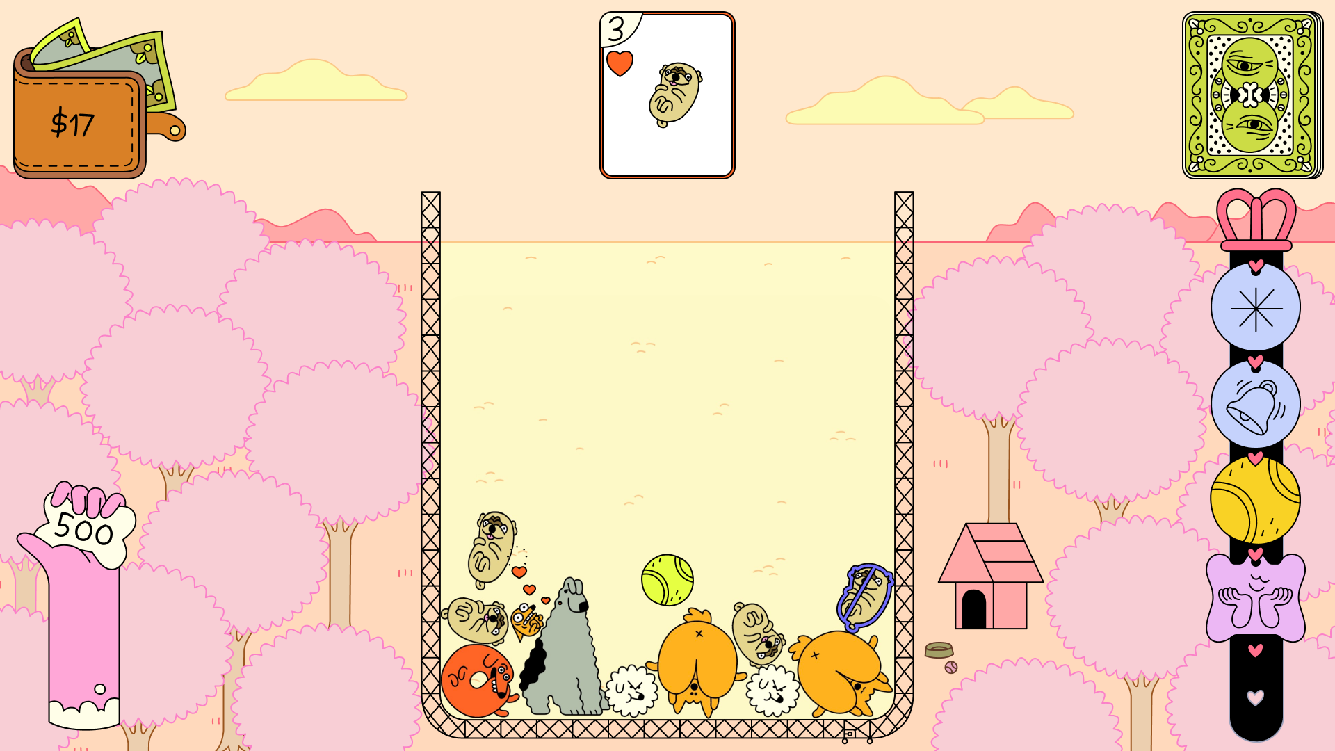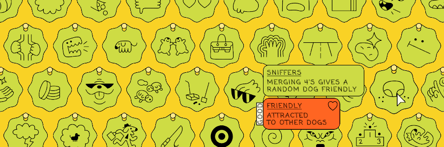 When two of the same dog touch, BAM! You get a BIGGER dog. With careful placement, some clever purchases, and a can-do attitude, you can merge pups strategically and achieve the biggest dogs imaginable.